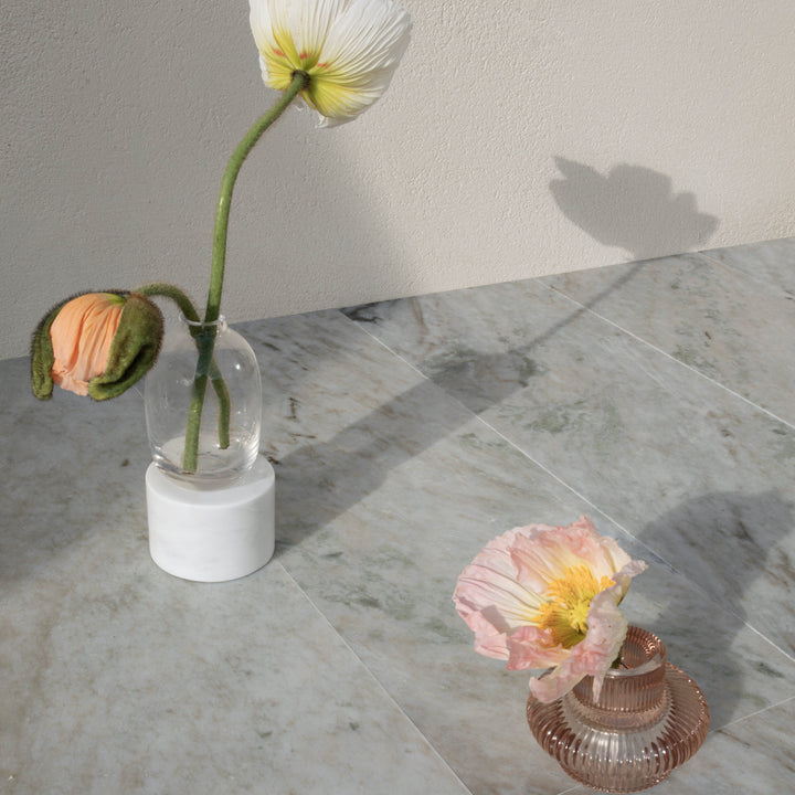 Marmor er en klassisk og slitesterk naturstein som for sinnet på elegante miljøer. Vi har et fantastisk utvalg av skandinavisk marmor, i nyanser fra skogsgrønt, blått, hvitt og rosa. Den kan legges både innendørs og utendørs, på gulv og vegger i for eksempel bad, kjøkken eller hall. Nedenfor kan du finne inspirasjon og lese om våre flotte marmorvarianter.